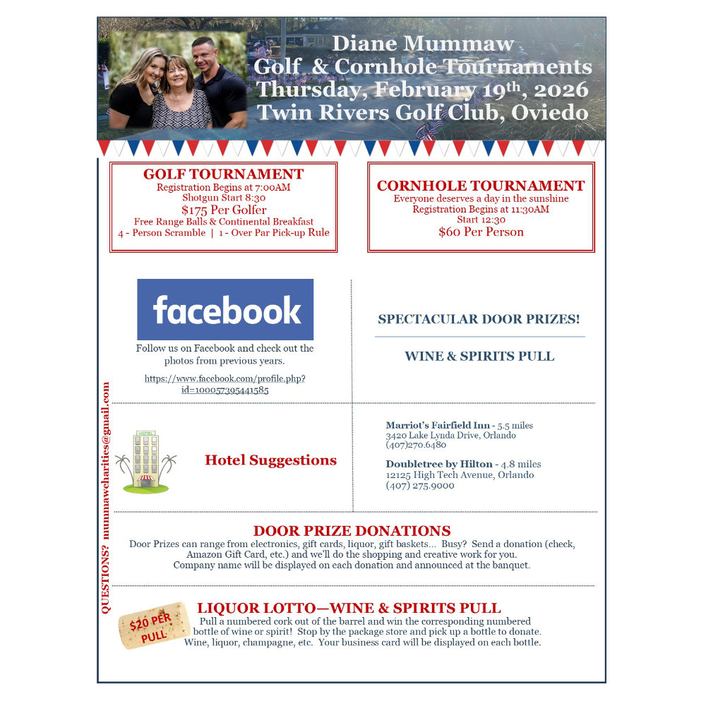 We are happy to be a sponsor for the 9th Diane Mummaw Golf & Cornhole Tournament. Diane Mummaw has been industry colleague of the Orlando Claims Association for many years.…